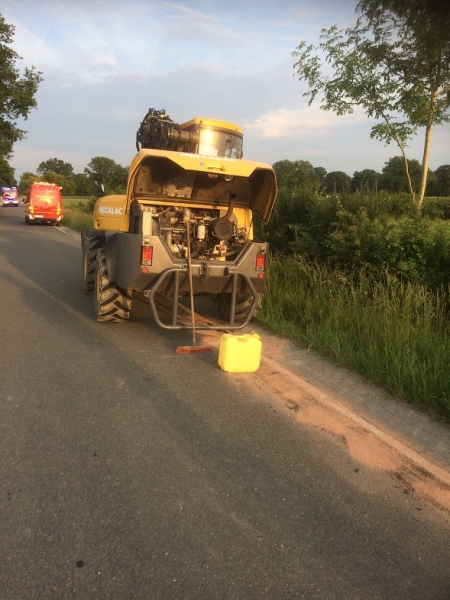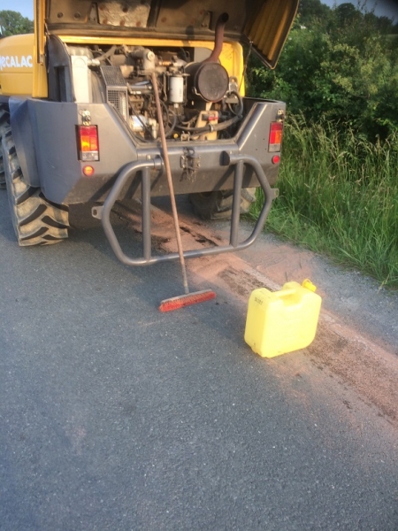 Ein Bagger verlor während der Fahrt auf einer Länge von ca. 700m durch einen technischen Defekt Motorenöl.