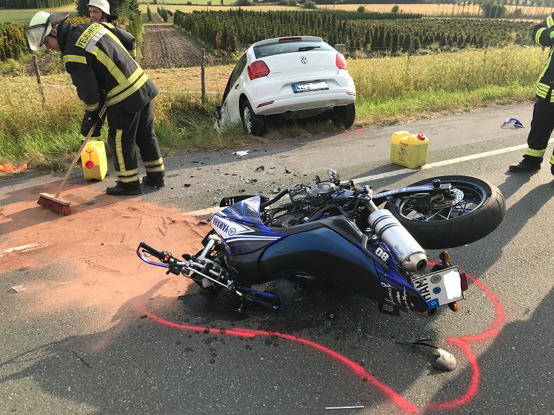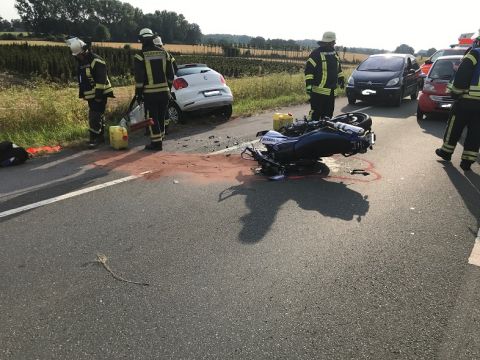 Auf der Dolberger Straße in Lippborg kam es zu einer Kollision zwischen einem Motorrad und einem PKW. Dabei fuhr das Motorrad seitlich in den PKW. Der PKW kam in einem Graben zu stehen.