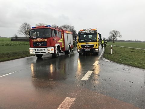 Die Feuerwehr nahm die auslaufenden Betriebsmittel mittels Bindemittel auf und reinigte anschließend die Fahrbahn.