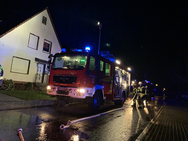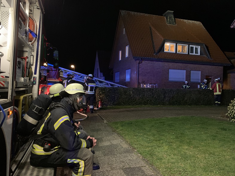 Beim Eintreffen der Feuerwehr stiegen dichter Qualm und Funken aus dem Schlot. Die Feuerwehr kehrte den Kamin und räumte die Glutnester aus dem Schlot. Damit der Kamin vollständig gekehrt werden konnte, kam auch eine Drehleiter zum Einsatz. Um auszuschließen zu können, dass sich das Feuer im Bereich einer Zwischendecke ausgebreitet hat, wurden Teile der Deckenverkleidung demontiert. Alle Bereiche wurden während des Einsatzes mehrfach durch die Einsatzkräfte mittels Wärmebildkamera kontrolliert.