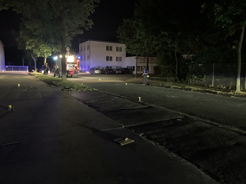 Der Fahrer eines Kleinwagens kam in einem Kreuzungsbereich von der Fahrbahn ab und prallte gegen einen Baum. Ein Zeuge konnte nach dem Unfall beobachten wie der Fahrer verletzt in Richtung der Fußgängerbrücke über der Lippe flüchtete.
