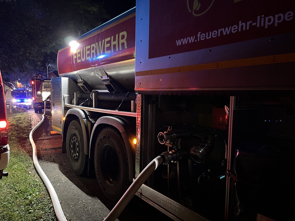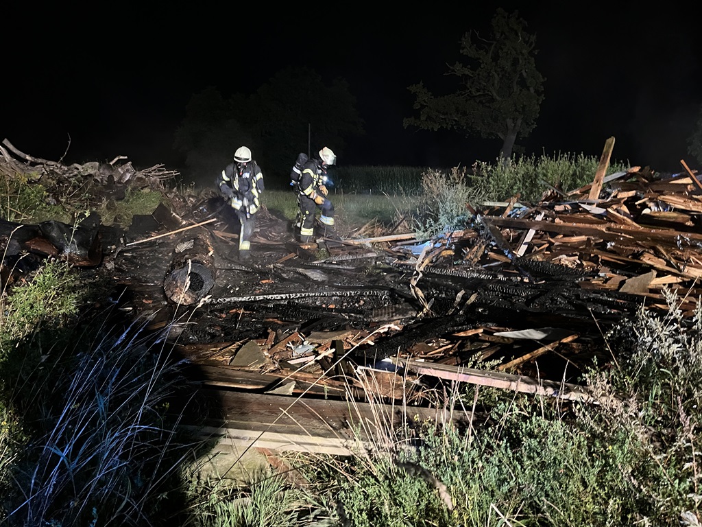 Die Bewohner einer Hofstelle wurden durch das Bellen der Hunde auf den Brand eines ca. 60qm großen Holzhaufen aufmerksam. Dieser befand sich in rund 10m Abstand zur einem Gebäude sowie zu einem Flüssiggastank. Erste eigene Löschversuche zeigten keine Wirkung.