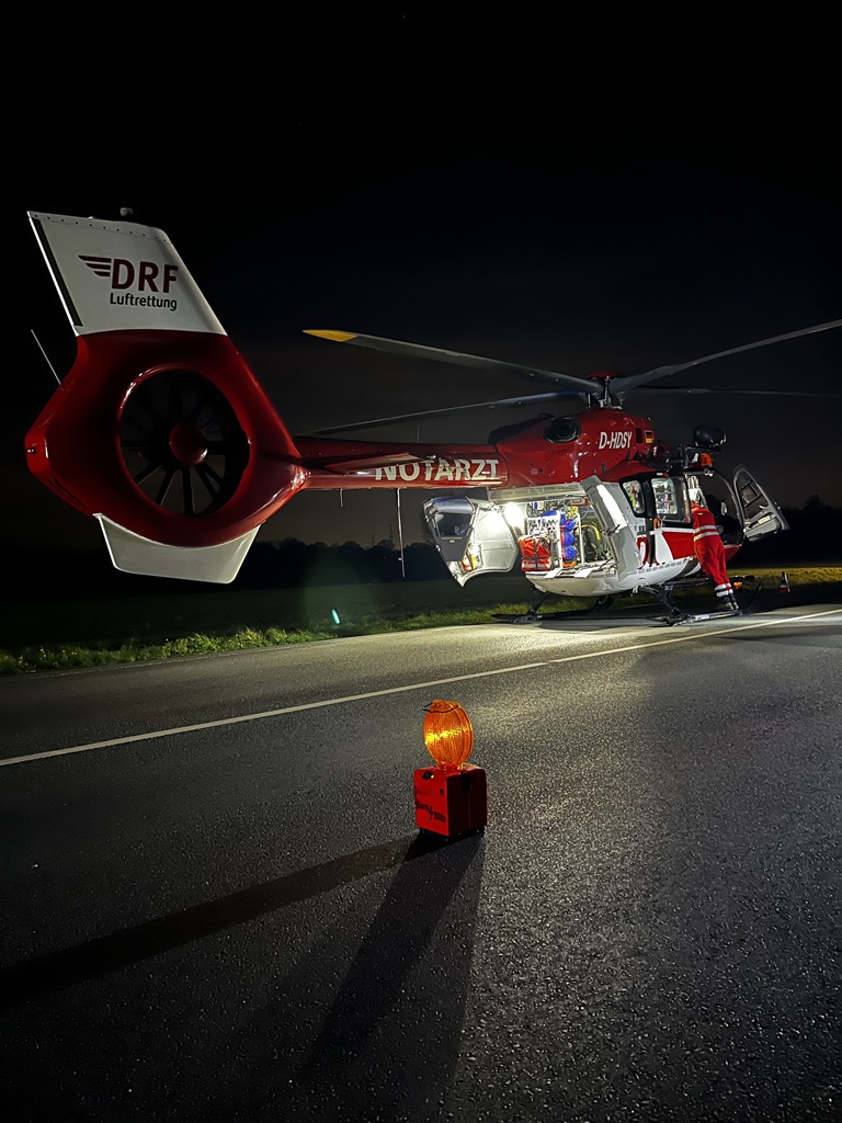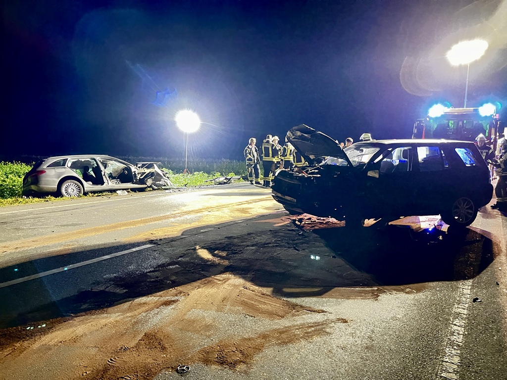 Bei dem Unfall wurde eine Person lebensgefährlich und drei Personen schwer verletzt. Alle Verletzten wurden mit einem Rettungshubschrauber oder Rettungswagen in umliegende Krankenhäuser transportiert. Die Straße war während des Einsatzes voll gesperrt.