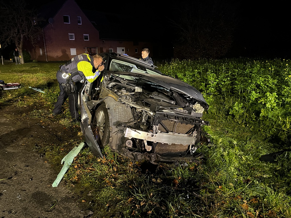 Aus bislang ungeklärter Ursache stieß auf der Dolberger Straße ein mit einer Person besetzter Pkw frontal mit einem mit drei Personen besetzten Pkw zusammen. Der Pkw mit den drei Insassen wurde von der Straße in einen Graben geschleudert. Da zunächst von drei eingeklemmten Personen ausgegangen wurde, wurden neben zahlreichen Einsatzkräften der Feuerwehr auch viele Einsatzkräfte des Rettungsdienstes alarmiert.