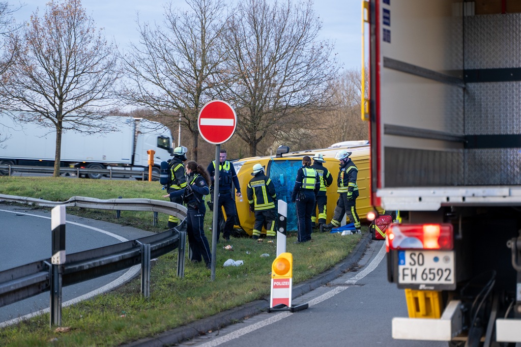 Aus bislang ungeklärter Ursache verlor der Fahrer eines Paketdienstes mit seinem Transporter im Abfahrtsbereich der BAB 2 die Kontrolle über sein Fahrzeug.