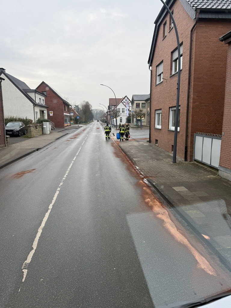 Im Ortskern von Lippborg kam es auf mehreren Straßen zu einer Verunreinigung der Fahrbahn durch auslaufende Betriebsstoffe.