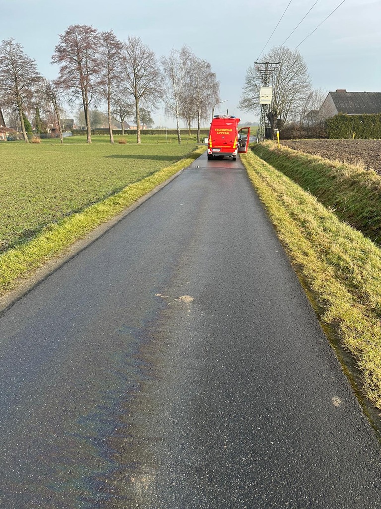 Auf einer Länge von rund 20km von Herzfeld, über Nordwald, Oestinghausen, Hultrop Lippborg zurück nach Herzfeld wurde die Fahrbahn durch auslaufende Betriebsstoffe verunreinigt.