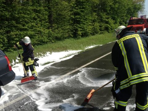Beim Eintreffen der Feuerwehr brannte ein PKW bereits in voller Ausdehnung. Die Feuerwehr löschte den PKW mittels Schaum und sicherte die Einsatzstelle. Anschließend wurde die Straße gereinigt und durch die Polizei wieder freigegeben. Verletzt wurde niemand. [MS]