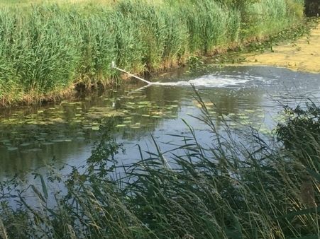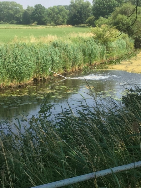 Die Feuerwehr pumpte mithilfe der Feuerlöschkreiselpumpen ca. 2000l/min von der Lippe in den Altarm umso für eine Verbesserung der Wasserqualität zu sorgen. [MS]