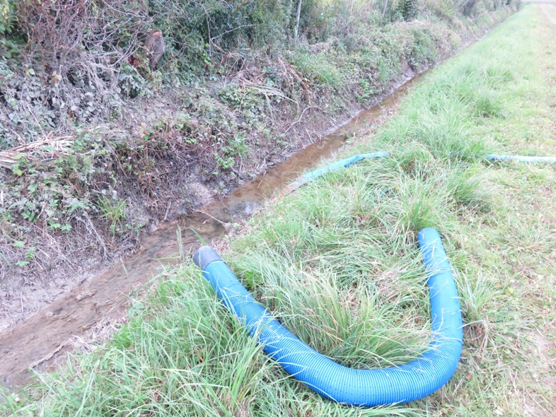 Die Feuerwehr schaltete die Pumpe ab und stellte nach einer genauen Erkundung eine Verunreinigung auf einer Strecke von ca. 1,5km fest. Auf der gesamten Strecke wurden durch die Feuerwehr insgesamt drei Ölsperren mittels Ölbindeschlängel und Ölbindewürfel errichtet.